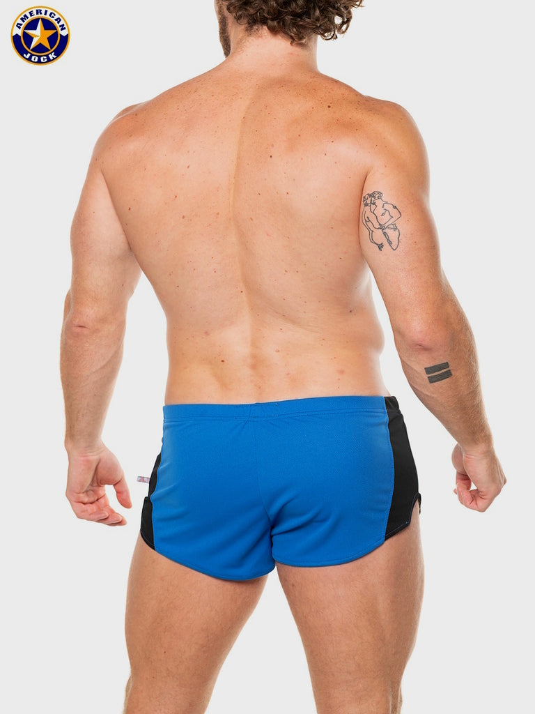 Designed for long distance runners, avid joggers or sprinters, this creation by American Jock Label is a must have for active males. The A J Physique cross country short has a 1-inch covered waistband, 7-inch outer side seam and 2-inch inseam, measurements ideal for high performance and mobility. This bottom also includes contrast color side panels with A J Tab in colors that never fall out of fashion. The light and airy qualities of this garment are perfect activewear for outdoors or the gym.