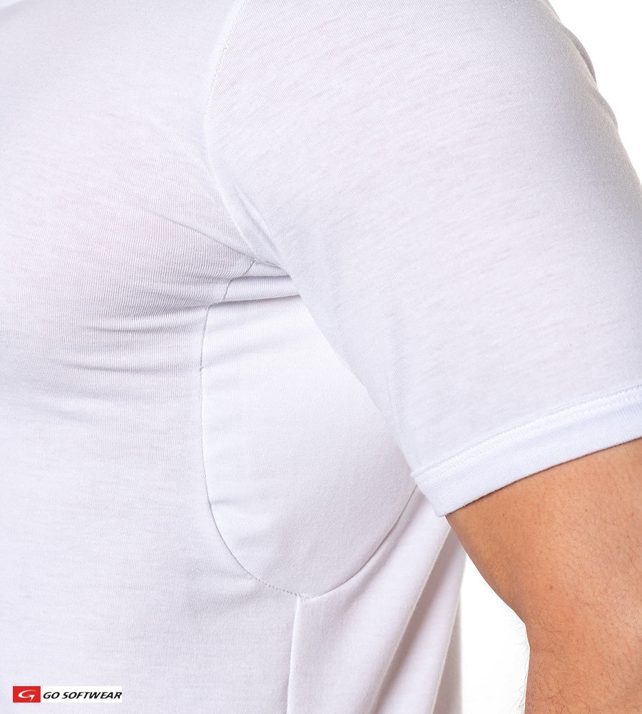 Introducing the no sweat tee™ by GO SOFTWEAR label, the perfect solution for men who struggle with excessive underarm sweat or from the medical condition axillary hyperhidrosis. This novel top created in cotton/spandex fabric in the classic t-shirt design has a crew neck and features sewn-in underarm pads to help absorb perspiration and prevent unsightly sweat stains. The tee shirt is lightweight and perfect for layering or wearing on its own for a casual look.