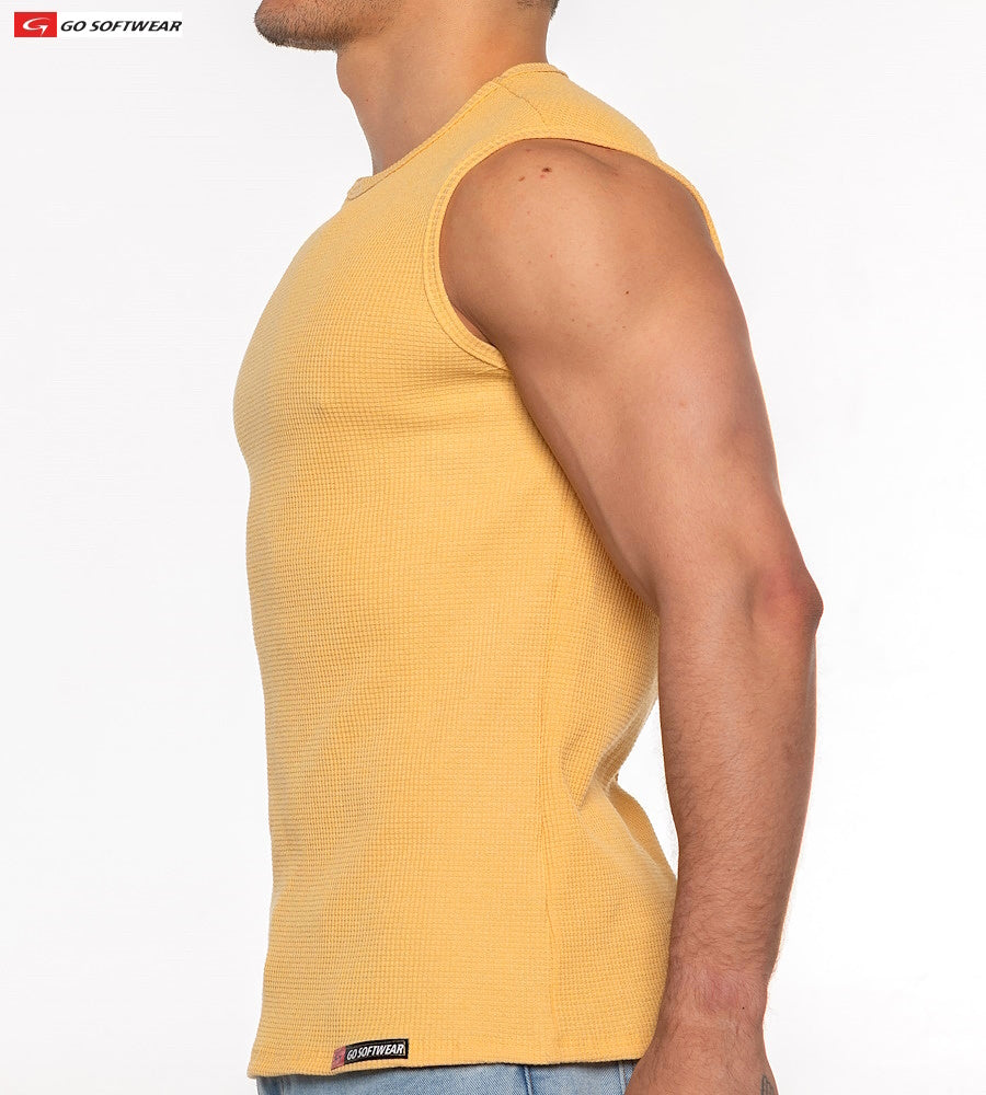 Demand attention with GO SOFTWEAR’s Gold Coast sleeveless tee. This top features luxurious waffle fabric that is meticulously garment washed and over-dyed, creating a buttery-soft texture and rich, saturated color that sets you apart from the crowd. The semi-fitted design with its flattering round neckline and 19” armhole circumference will highlight your arm definition.