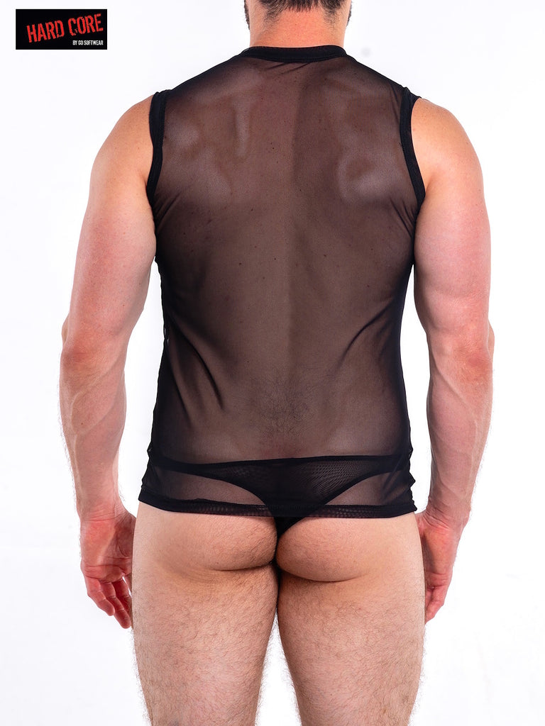 Strip down to pure confidence with Hard Core’s Intimate sleeveless tee. This audacious mesh essential features a translucent weave that is breathable and lightweight, designed to make an impact whether worn as a standalone piece or layered underneath. The crew neck and expansive armholes provide uninhibited movement, while the tailored snug fit accentuates your silhouette. Versatile, daring and unapologetically bold. Made in Downtown L. A., Ca Fashion District Fabric Content: 90% nylon 10% spandex Machine or hand wash for best care results